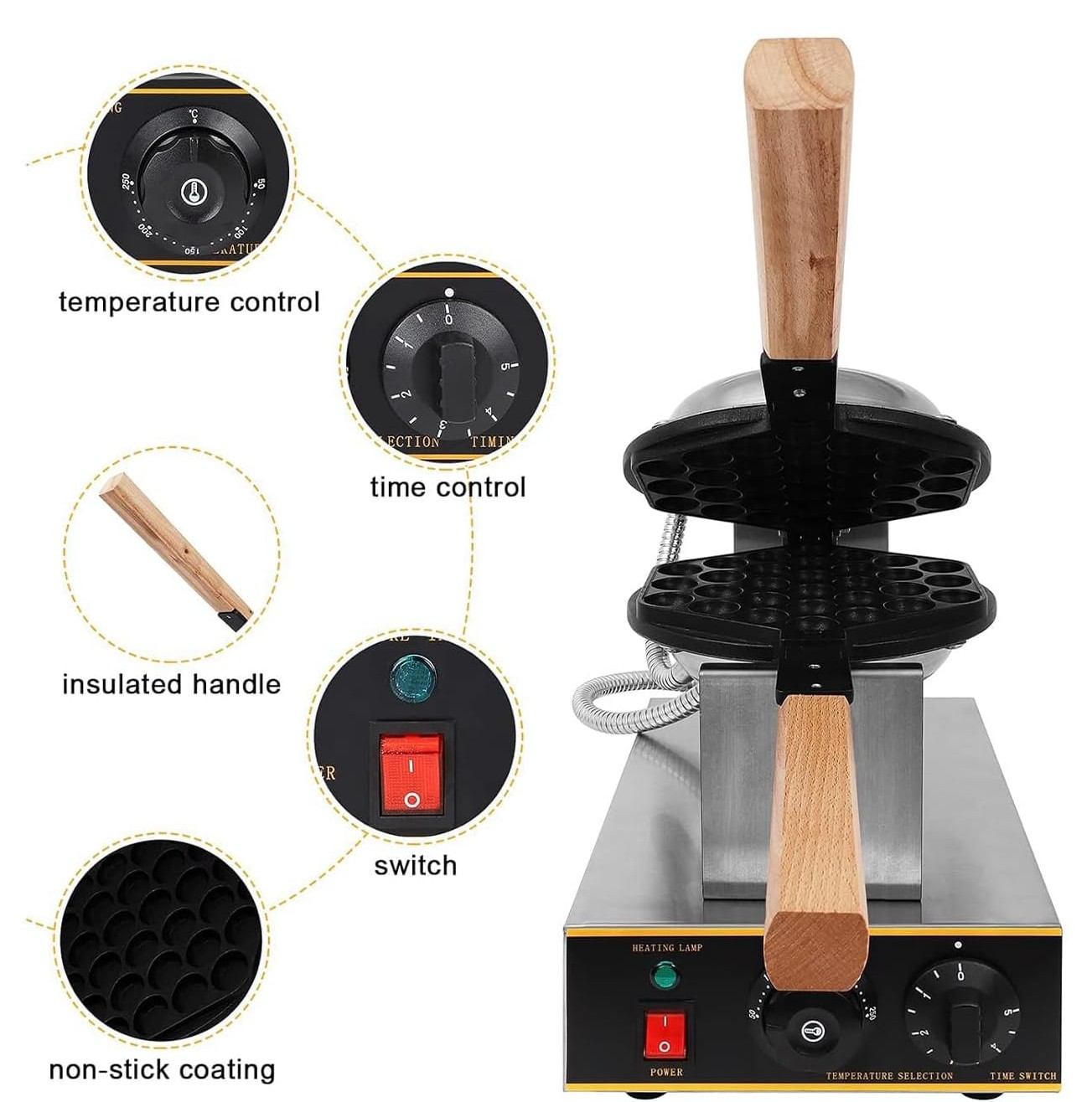 Egg Waffle Maker . single head. Power: 220V / 50Hz / 1400 W N. weight : 5.3 Kg G. weight: 6.5 Kg Dim :225 x 420 x 290mm Packing dim:485 x 295 x 315mm WF-01E / made in China