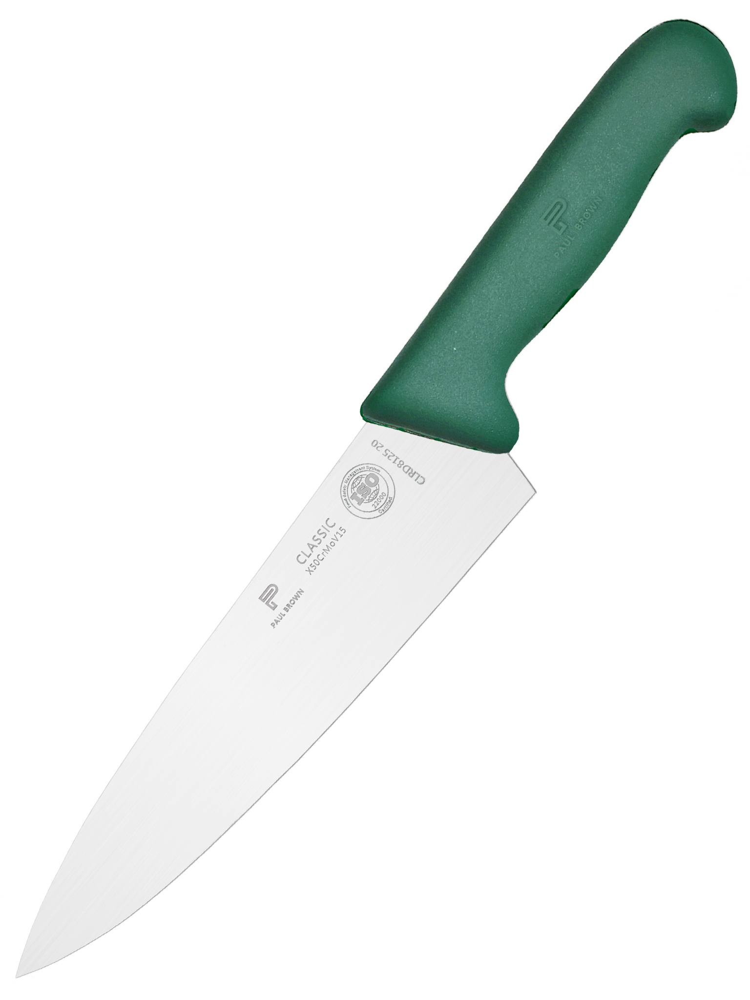 PAUL BROWN Classic 8 Inch X50CrMov15 Chef Knife with Soft Touch Green Handle 850055140202